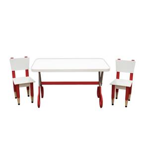 Kit 2 Cadeiras Mesa Infantil Tesoura Vermelho Tampo Branco Retangular Base Temática para Estudos Desenhos Mobília Decor