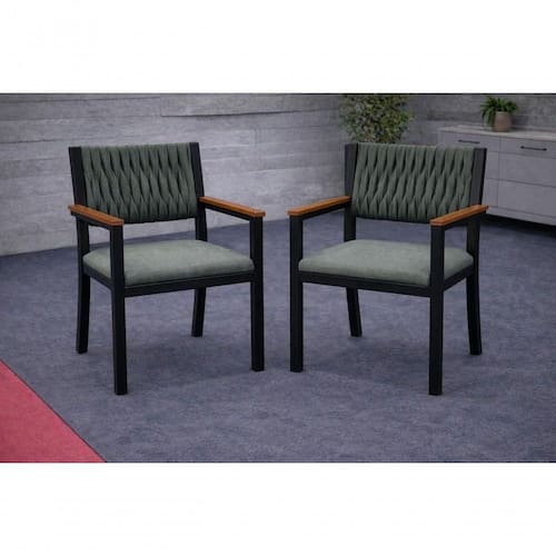 Sua estrutura robusta em metal garante resistência e estabilidade, enquanto os braços com detalhe amadeirado trazem um toque de elegância e aconchego. O estofamento em tecido náutico foi desenvolvido especialmente para uso externo, oferecendo conforto ao sentar, fácil manutenção e maior durabilidade.
