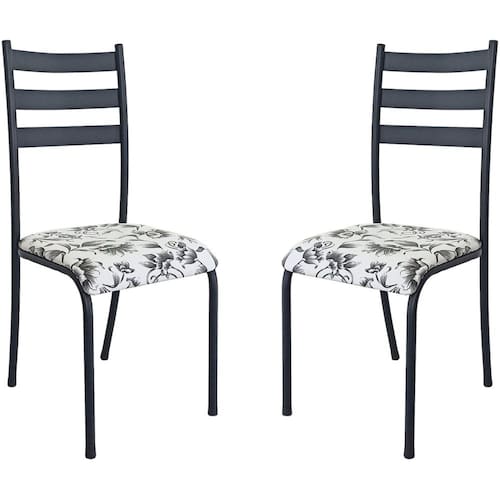 *Podem ocorrer variações de cores nos assentos das cadeiras em relação às fotos.* Acabamento: Pintura Epóxi Acabamento da Estrutura: Pintura Almofada do assento: Fixa Altura do assento até o chão: 44 cm Ambiente Principal: Cozinha codigo_ean: 7900288280947 Complexidade da Montagem: Baixa: pode ser montado por uma pessoa sozinha Cor: Preto/Branco Floral Cor do Produto: Preto/Branco Floral Cor dos Pés: Preto Dobrável: Não Escala de Brilho: Fosco Estrutura do Assento: MDF/MDP/Espuma Estrutura do Encosto: Aço Giratória: Não Itens Inclusos: 2 Cadeiras, Kit Ferragens e Manual de Montagem Linha ou Coleção: 541.sli Manual de Montagem e Instalação: https://product-hub-prd.madeiramadeira.com.br/266018993/documents/20b36a06-085a-4385-8cba-d9648a2ead823305160654817618467283885.pdf Marca: MBM DECOR Material dos Pés: Aço Material Principal: Aço Necessita Montagem: Sim Origem do Produto: Nacional Peso: 2,9 kg Possui Apoio para Braços: Não Possui Apoio Para os Pés: Não Possui Assento/Encosto Estofados: Possui Somente o Assento Estofado Possui Espaldar: Não Possui Rodízio: Não Recomendações de Uso, Manutenção e Limpeza: Limpar com pano úmido. Uso recomendado para adultos e áreas internas. Sistema de Montagem: Já vai com todos parafusos necessários. Necessíta chave Philips. Tipo de Assento: Fixo Tipo de Encosto: Fixo Marca: Não Informado