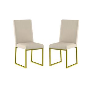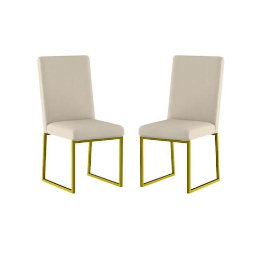 Você receberá 1 volume, ou seja, duas Cadeira Estofada para Mesa de Jantar com Base Industrial Dourado.