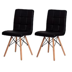 Kit 2 Cadeiras Estofadas com Encosoto para Mesa de Jantar Cozinha Sala de Estar Escrivaninha Penteadeira Confortável Base Madeira Gomos Charles Eames Eiffel Preto