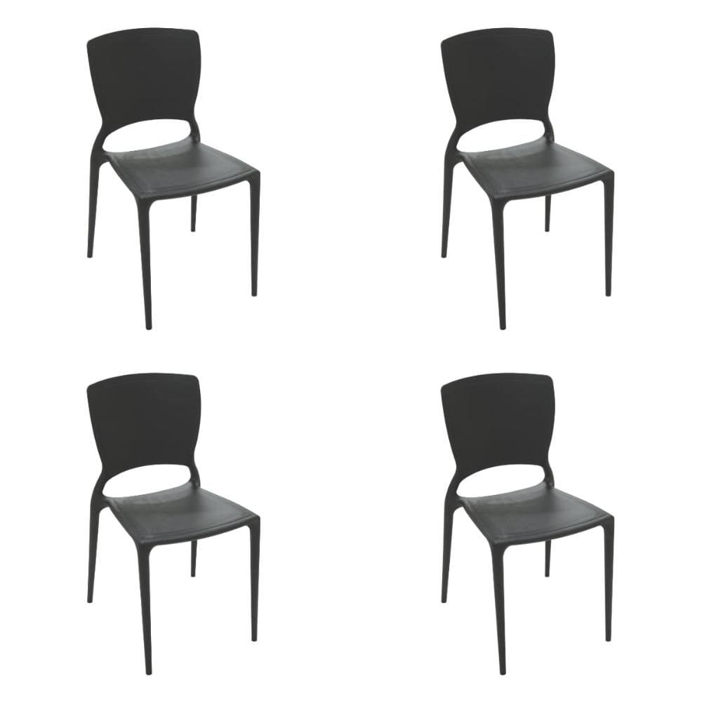 kit 2 cadeiras plastica monobloco sofia grafite encosto vazado horizontal tramontina