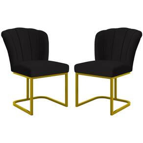 Kit 2 Cadeiras Poltrona Flor Pés Metal Dourado Mesa Quarto Cozinha Cor:preto Preto