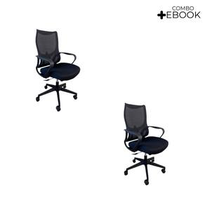 O encosto é revestido em tecido Mesh Premium, composto por 64% de poli elastômero e 36% de poliéster. Já o assento conta com espuma 35D, revestida em tecido 100% poliéster.