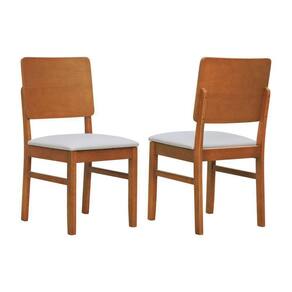 Kit 2 Cadeiras Quéops Madeira Maciça Encosto Anatômico Assento Estofado - Amêndoa Corano Bege