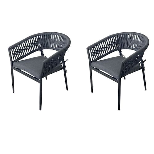 Kit 2 Cadeiras Ravello Caraíva Fratini Encosto Corda Náutica Assento AcquaBlock Base Alumínio Grafit - Cinza | Grafite