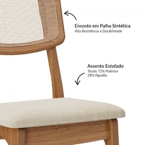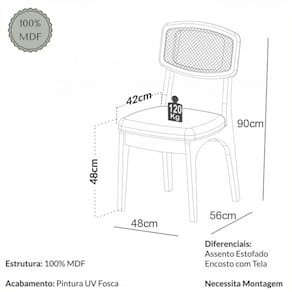 Características: Estrutura 100% MDF Acabamento em Pintura UV Fosca Encosto com Tela em Palha Sintética Assento Estofado
