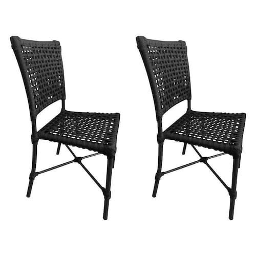 Kit 2 Cadeiras Roma Corda Náutica Base Em Alumínio Preto/preto - Cor: Preto