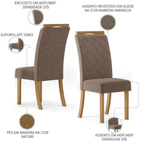 Kit 2 Cadeiras Estofadas Bella é a escolha perfeita para mobiliar a sua sala de jantar. Com design único, possui curvatura no encosto para garantir mais conforto. Sua estrutura é confeccionada em MDP (15mm) e MDF (25mm), proporcionando durabilidade. Pintura com acabamento em UV (Fosco). Compostas por assento com espuma D18 e encosto estofado com espuma D15, que proporcionam mais conforto e qualidade, revestida com tecido de suede toque suave, garantindo conforto mesmo no dia a dia. Pés fixos e cantoneira de fixação para maior segurança. Suporta até 120 kg. Altura do assento até o chão de 50,5 cm, ideal para diversas composições de ambientes. Com linhas suaves e acabamento refinado, se adapta facilmente a diversos estilos de decoração, desde os mais clássicos até os modernos. Este móvel chegará na sua casa separado em 01 volume.