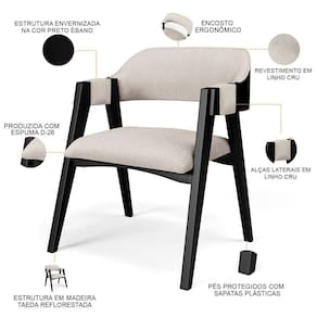 ColorSimple: Cru | Color: Preto Cru | Material: Madeira, espuma | Fabricante: Lyam Decor | ProductLength: 59 cm | Cor do assento: Cru | Material do estofamento: Linho | É dobrável: Não | É empilhável: Não | ColorSupplier: Cru | Model: Suran | OriginState: Paraná | SizeDescription: Largura: 61 cm x Altura: 79 cm x Profundidade: 59 cm | ProductHeight: 79 cm | Altura da cadeira: 79 cm | Firmeza: Firme | Tempo de montagem: na | Cor: Preto Cru | ColorFamily: Cru | MaterialFamily: Madeira | Cor do estofamento: Cru | ProductWarranty: 90 dias após o do produto | ProductInstructions: Produto para uso em ambiente interno, nao devendo ficar exposto ao sol, calor e umidade excessivos. | OriginCountry: | ProductWidth: 61 cm | Largura do assento: 52 cm | SupplierSimpleName: Kit 2 Cadeiras Sala de Jantar Estar Living Estofada Suran L02 Preto Linho Cru - Lyam Decor | ProductContents: 2 Cadeiras | É cadeira de balanço: Não | ProductWeight: 18 kg | Cor da estrutura da cadeira: Preto | Desenho do tecido: Liso | Profundidade da cadeira: 59 cm | Requer montagem: Não | Profundidade do assento: 50 cm | Largura da cadeira: 61 cm | Peso máximo suportado: 120 kg | Altura do assento a partir do solo: 50 cm