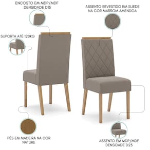 Kit 2 Cadeiras Estofadas Nina é a escolha perfeita para mobiliar a sua sala de jantar. Com design único, possui curvatura no encosto para garantir mais conforto. Sua estrutura é confeccionada em MDP e MDF, proporcionando durabilidade e resistência. Pintura com acabamento em UV (Fosco). Compostas por assento com espuma D23, encosto estofado com espuma D15 que proporcionam mais conforto e qualidade. Revestida com tecido de suede toque suave, garantindo conforto mesmo em longos períodos de uso. Pés fixos e cantoneira de fixação para maior segurança. Suporta até 120 kg. Altura do assento até o chão de 40,5 cm, ideal para diversas composições de ambientes. Com linhas suaves e acabamento refinado, se adapta facilmente a diversos estilos de decoração, desde os mais clássicos até os modernos. É a escolha perfeita para compor ambientes acolhedores e elegantes. Este móvel chegará na sua casa separado em 01 volume.