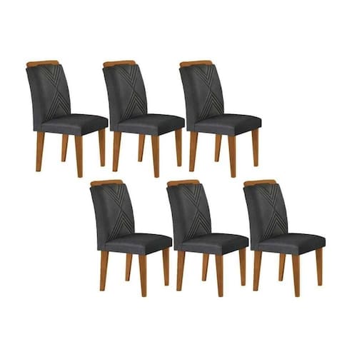 Cadeira Sala de Jantar Amsterdã Kit 6 Un Capuccino/Linho Grafite - Rufato