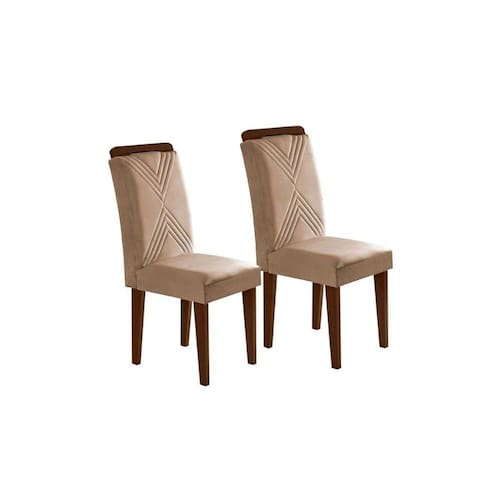 Kit 2 Cadeiras Sala Jantar Amsterdã Madeira 2 Un Capuccino/Linho Turim - Rufato - Blush