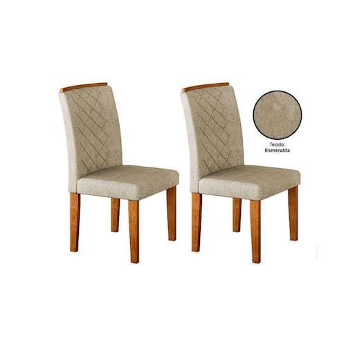 Cadeira Sala de Jantar Jade Kit 2 Un Madeira Capuccino/Linho Bege Turim - Rufato