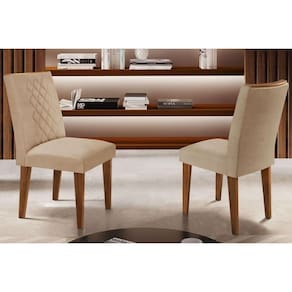 Kit 2 Cadeiras Sala Jantar Jade 2 Un Madeira Capuccino Linho Bege Turim Rufato - Marrom