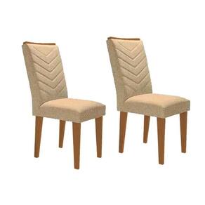 Kit 2 Cadeiras Sala Jantar Londrina 2 Un Madeira Capuccino Linho Bege Turim Rufato