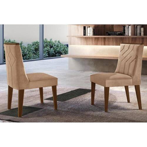 Kit 2 Cadeiras Sala Jantar Nevada 2 Un Madeira Capuccino/Linho Bouclê Creme - Rufato - Blush