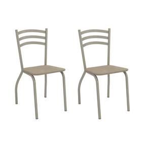 Cadeira Sala de Jantar Portugal 2C007NK Aço Kit 2 Un Niquel/Linho Bege Fendi - Kappesberg
