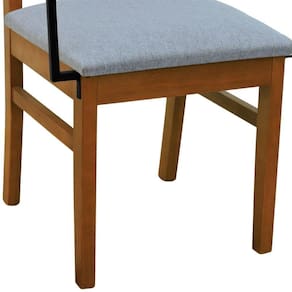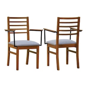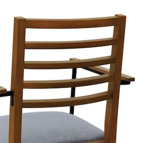 Kit 2 Cadeiras Tiê Madeira Maciça Encosto Ripado C/braço Metal - Amêndoa Assento Estof. Linho Cinza Mescla Impermeável