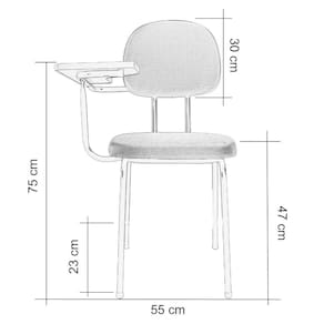 Descrição: • Assento e Encosto estofado em espuma; • Capacidade de Peso de até 100kg; • Pintura Epóxi na cor preta; • Revestimento Tecido J. Serrano; • Prancheta em MDP ( informar caso queira canhotas).