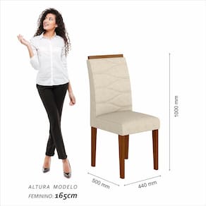 Detalhes Técnicos das Cadeiras -Assento e Encosto Tapeçados, Estofados e Fixos -Peso Suportado da Cadeira: 90KG -Facilidade da Montagem: Média -Tonalidade da Cadeira: Cinamomo/Suede Bege -Espuma do Assento: D16 -Espuma do Encosto: D14 -Tipo de Pintura: UV Texturizada -Material da Estrutura: Madeira -Medida Cadeira: 100CMx44CMx50CM