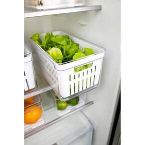 Kit 2 Caixa Organizadora Geladeira Frutas Verduras 5 Litros Cor: Transparente F6032 MAPLE DECOR Organizador para Geladeira Clear Fresh com Cesto Legumes Frutas e Verduras Com o organizador de geladeira Clear Fresh com Cesto , você terá organização e irá conservar e manter o frescor de seus alimentos por mais tempo, a tampa com ventilação ajustável mantém o nível de umidade ideal para cada tipo de alimento, mantendo-os frescos por mais tempo. Possui um cesto de drenagem que impede que a umidade acumulada se mantenha no alimento, evitando o murchamento e deterioração precoce. Caracteristicas: - Material Bandeja - POLIPROPILENO; - Material Organizador - POLIENTIRENO; - Cor: Transparente; - Cesto para drenar agua dos alimentos; - Medidas AxLxC: 13 X 15 X 30cm; - Peso: 600g; Vantagens: - Ventilação e Humidade controlada; - Organização e otimização de espaço; - Com Cesto de Drenagem Removível; - Capacidade 5L. Acompanha: 01 Organizador Clear Fresh com Cesto 01 Organizador Clear Fresh