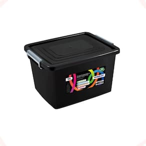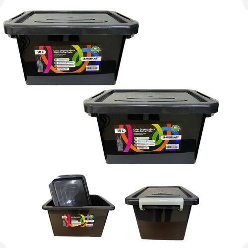 Caixa organizadora preta 10l empilhável trava e rodizio