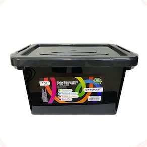 Caixa organizadora preta 10l empilhável trava e rodizio