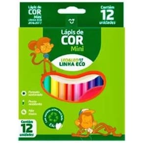 Min lápis de cor linha eco Leo e Leo. Contém 12 cores cada pacote Disponível no formato sextavado. Já vai apontado. Ponta resistente. Não recomendado para menores de 3 anos.. Não tóxico. Certificação INMETRO
