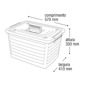 Kit 2 Caixas Organizadoras 50 Litros Preta com Tampa e Rodas 25167 Arqplast Kit 2 Caixas plásticas organizadoras com tampa, travas, alça e rodasMaterial: PolipropilenoCodigo de barras: 7898280071758Cor: Preta com tampa cinzaMedida do produto: 570x410x350 mm Compr. X Lar. X Alt. Capacidade: 50 litros