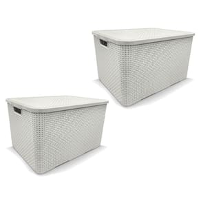 Kit 2 Caixas Organizadoras Rattan BRANCA 15 Litros Arqplast Kit 2 Caixas Organizadoras Rattan Branca 15 Litros ArqplastCaixa organizadora em plástico com tampa, que facilita a organização De guarda roupas e armários, por ser uma peça charmosa expor em Ambientes abertos dá um toque especial a decoração. Combina com vários ambientes, como cozinha, sala, banheiro e quarto. Material - Polipropileno DescriçãoDimensões:345 X 255 X 700mm (Corpo) 365 X 275 X 140mm (Tampa) (comprimento x largura x altura) medida do produtoDimensões: 345 X 260 X 180mm (comprimento x largura x altura)