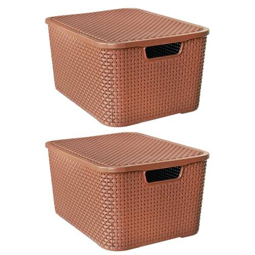 Kit 2 Caixas Organizadoras Rattan Marrom 15 Litros com Tampa 25592 Arqplast Kit 2 Caixas ORGANIZADORas RATTAN com TAMPA 15 MARROM 25592 ARQPLAST
