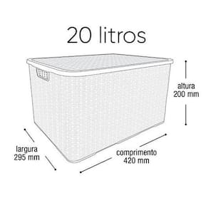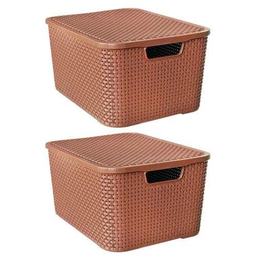 Kit 2 Caixas Organizadoras Rattan Marrom 20 Litros com Tampa 25597 Arqplast Kit 2 Caixas ORGANIZADORas RATTAN com TAMPA 20 MARROM 25597 ARQPLAST Caixa organizadora em plástico com tampa, que facilita a organização de guarda roupas e armários, por ser uma peça charmosa expor em ambientes abertos dá um toque especial a decoração. Combina com vários ambientes, como cozinha, sala, banheiro e quarto. Material - Polipropileno Tamanho - Altura 18 x Largura 26,0 x Comprimento 34,5 cm