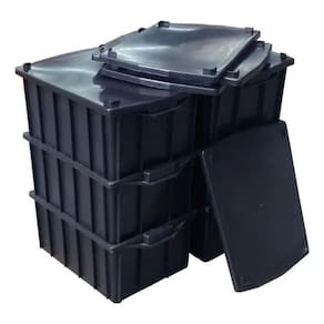Kit 2 Peças Caixa Plástica Organizadora com Tampa 28L para Organização em Polipropileno Resistente Uso Geral Preto