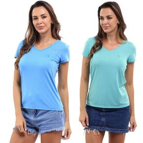 Kit 2 Camiseta Feminina Dia A Dia Gola V Academia