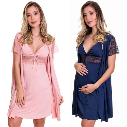 Camisola amamentação com robe em Microfibra e renda, não tem bojo.