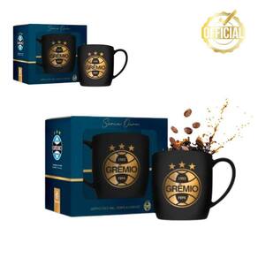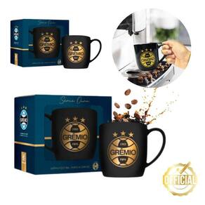 Kit 2 caneca xícara porcelana preto dourado urban 300ml serie ouro grêmio oficial Detalhes - kit 2 unidades caneca A caneca porcelana urban serie ouro é perfeita para os apaixonados demonstrarem todo o carinho pelo seu time do coração.