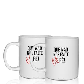 Kit 2 Canecas Brancas Personalizadas Fé E Café