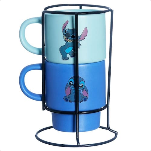 Depois de um dia cheio de aventuras, nada melhor do que relaxar com um bom café na companhia do Stitch Este kit com duas canecas empilháveis é perfeito para compartilhar momentos especiais com quem você ama. Cada caneca possui 180ml de capacidade, o tamanho ideal para o café da manhã ou da tarde. Produzidas em cerâmica de alta qualidade, as canecas apresentam detalhes encantadores inspirados no Stitch e acabamento delicado que vai conquistar qualquer fã. Com alça ergonômica, base empilhável e suporte metálico incluso, elas são práticas, charmosas e ideais para decorar sua cozinha. Detalhes do Produto: