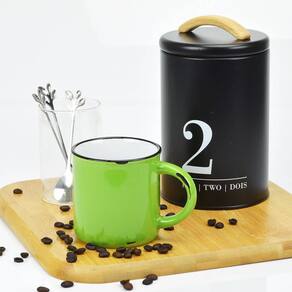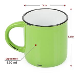 2 Canecas Tipo Esmaltada Cerâmica Grand Retro 320ml Verde Kit com 2 Canecas grande com capacidade para até 320ml, com estilo retro que remete as tradicionais canecas esmaltadas, perfeita para bebidas longas como chá, cappuccino, chocolate quente.
