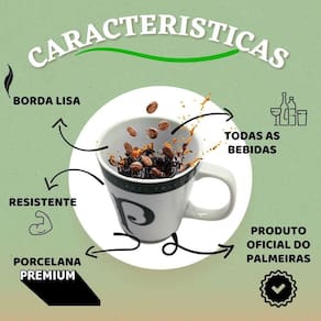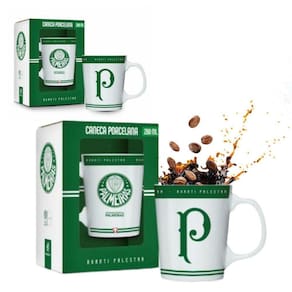 Kit 2 canecas porcelana xícara branca verde premium 260ml café palmeiras oficial selo Kit 2 unidades caneca porcelana premium 260ml café palmeiras oficial com selo licenciado A caneca caneca porcelana premium do verdão é perfeita para os palmeirense mais apaixonados demonstrarem todo o carinho pelo seu time e ao mesmo tempo apreciar suas bebidas favoritas nos momentos mais aconchegantes da vida. Além disso você pode usá-la como porta treco, porta lápis ou presentear alguém especial. ela é fabricada em porcelana de alta qualidade que garante maior durabilidade durante seu uso e possui estampas únicas com cores vivas para deixar o ambiente ainda mais divertido e estiloso.