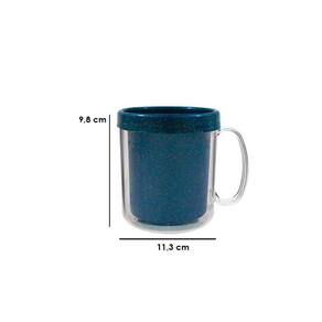 Caneca Térmica Cristal 300mL, é atóxica e formada por duas partes: corpo externo cristal transparente feito em Plástico Premium PS e parte interna sustentável feita com 50% de fibra de madeira colorida com pigmentos orgânicos e 50% de Plástico Premium PP atóxico, resistente. Dupla parede que conserva por mais tempo a temperatura. Produto não pode ir ao micro ondas, lava louças e freezer. Imagens meramente ilustrativas. A Linha Green é fabricada a partir de fibras naturais, portanto haverá variação de tonalidades nos produtos. Marca: Bb Store Ean: 7908567013293