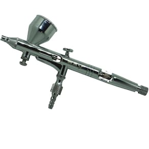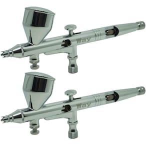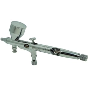 Com o Aerógrafo Importway dupla ação de 0.2 mm, o artista pode manipular com mais precisão, a quantidade de tinta e seu foco, e a emissão de ar apenas através do gatilho, sem a necessidade de ajustes para cada traçado. Geralmente o movimento vertical (pressão sobre o gatilho) aciona o ar comprimido, e puxando o gatilho para trás, abre-se a vazão de tinta. Pode-se conseguir no mesmo tiro através do movimento horizontal do gatilho, traços extremamente finos ou grossos. É o aerógrafo mais indicado para trabalho de desenhos, sombra e luz, onde é necessário grande precisão no volume de tinta empregado, e controle do foco. Como vantagem, temos a performance citada, como desvantagem, manutenção mais delicada devido a pinça central, além de possuir via de regra, um reservatório menor de tinta. Este é um tipo de aerógrafo indicado para artistas experientes que tenham controle das cinco variáveis da pintura spray ou pulverizada a ar: distância (até o objeto sendo pintado), pressão, diluição (viscosidade da tinta), velocidade de aplicação, e o leque.