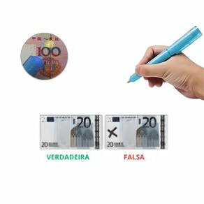 Kit 2 canetas para conferir cédulas e moedas Kit com 2 canetas identificadora de notas falsas - detector de dinheiro A caneta identificadora é simples de usar e fornece resultados imediatos para detectar se a nota é verdadeira ou . É o método mais eficiente, discreto, rápido e econômico para identificar dinheiro , ideal para transações diárias e para quem tem comércio. Como funciona: Basta fazer um risco pequeno na cédula. Se o traço ficar incolor ou amarelo claro, a nota é verdadeira o risco desaparece em alguns segundos . Se o traço ficar escuro, a nota é . Com a luz ultravioleta embutida, você consegue identificar facilmente as marcas dágua nas notas, o que é uma forma de detectar dinheiro . Esse método funciona em qualquer tipo de papel moeda, seja nacional ou internacional, como reais, dólares, euros, entre outros. Proteja-se contra fraudes e falsificações com as canetas testadoras de dinheiro . Simples de usar, basta passar a caneta sobre a nota e a reação química ocorre instantaneamente. Seu composto químico exclusivo garante um controle eficaz, sem danificar as cédulas. O que você vai receber: 2 canetas identificadora de notas falsas Trabalhamos com dois modelos de embalagem, mas garantimos que a caneta é a mesma e possui a mesma qualidade. Cor da caneta: azul ou roxa - enviamos a cor disponível no . do vendedor: 30 dias. Marca: Não Informado Ean: 7905246493193