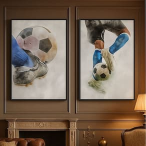 Kit 2 Canvas Menino Futebol Aquarela 60x40cm Mold Branca