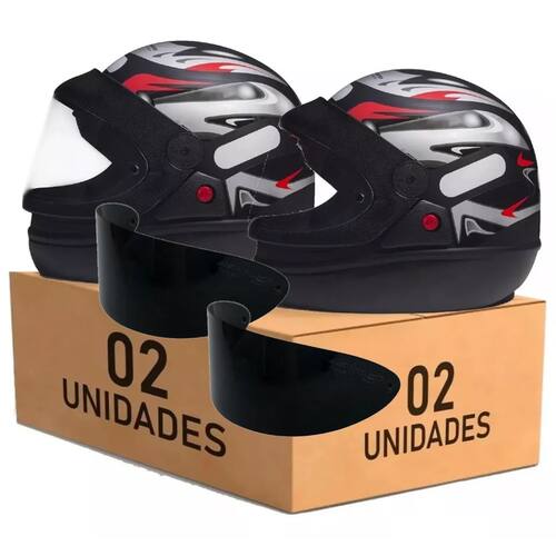 Kit 2 Capacete San Marino Automático Grafic Preto Com Viseira Extra - Cor: Preto / Tamanho: 56/60