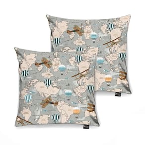 Kit 02 Capas para Almofada Tecido Estampado Mapa Mundi D75 - D'rossi