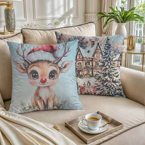 2 CAPAS DE ALMOFADA COM ESTAMPA NATALINA 43X43