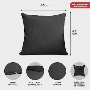 Tamanho: Medidas de 45x45cm, compatíveis com almofadas padrão de 40x40cm. Perfeitas para quem busca praticidade sem abrir mão do estilo.