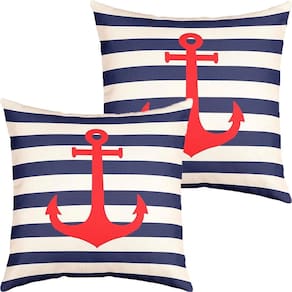 Kit 2 Capas De Almofadas Vermelho Âncora Navegação Marítima -